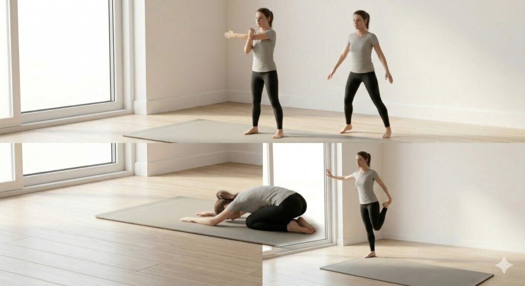 This improves flexibility and prevents injury in your home fitness routine.