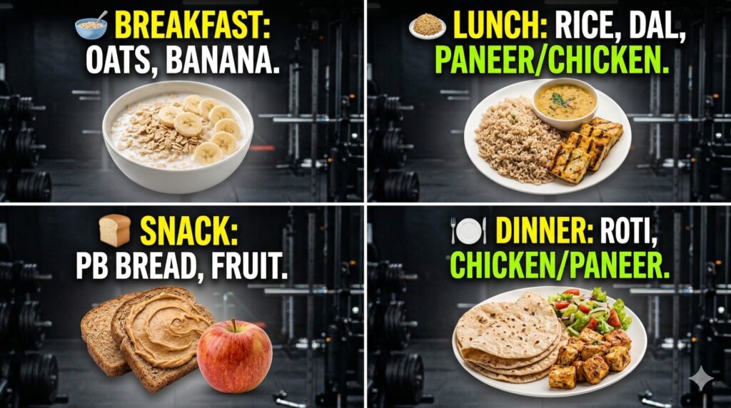This balanced muscle gain meal plan ensures you get enough nutrients throughout the day.